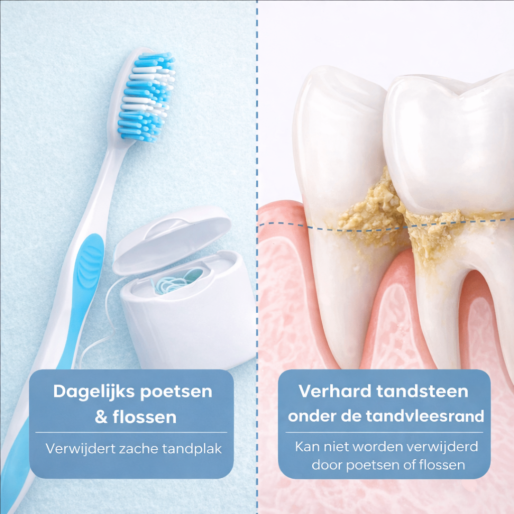 Dat komt doordat dagelijkse mondhygiëne tandsteen niet verwijdert. Juist tandsteen is vaak de oorzaak van de duurste tandheelkundige behandelingen.